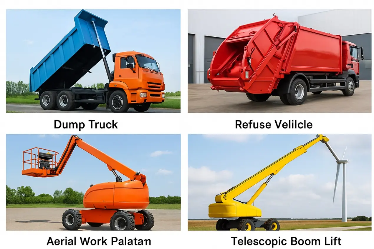 In aliquet dump, cylindri hydraulici multi-scaenae saepe consueverunt vecturas levare ad celeria iactans onera gravium; in sanitation quisquiliarum aliquet, cylindrici hydraulici operculum aperitionis et compressionis novissimum expellunt systema efficiens operandi; in rostra operis aeria, sicut tabulata aerea vel scissoria aliquet, bracchium elevatum moderantur et suggestum operativum stabiliter erigunt; praeterea, aliquet TUBER agriculturae, tailboards hydraulicas trailer, et aurigae acervos construendi etiam confidunt suis notis telescopicis multi-statis ad certas operationes perficiendas.